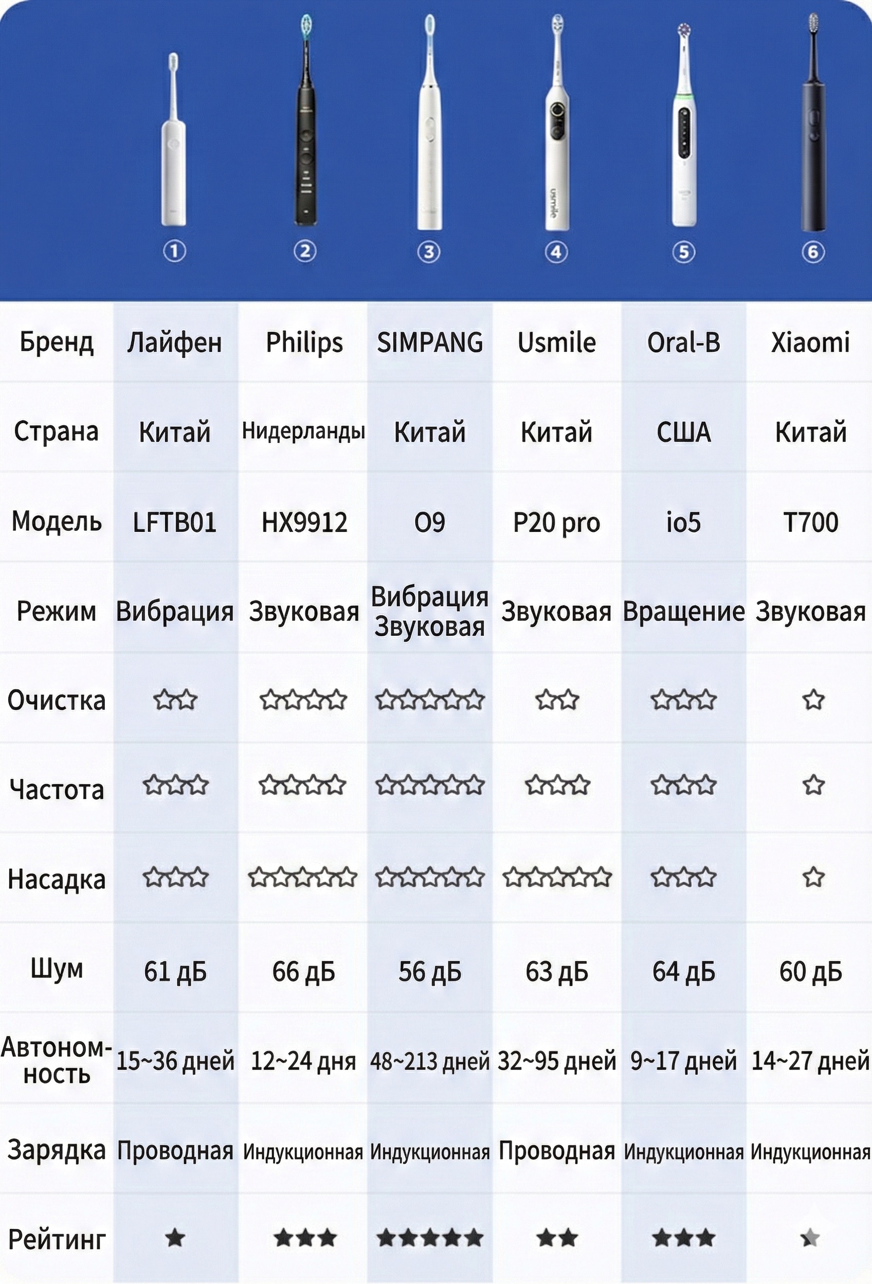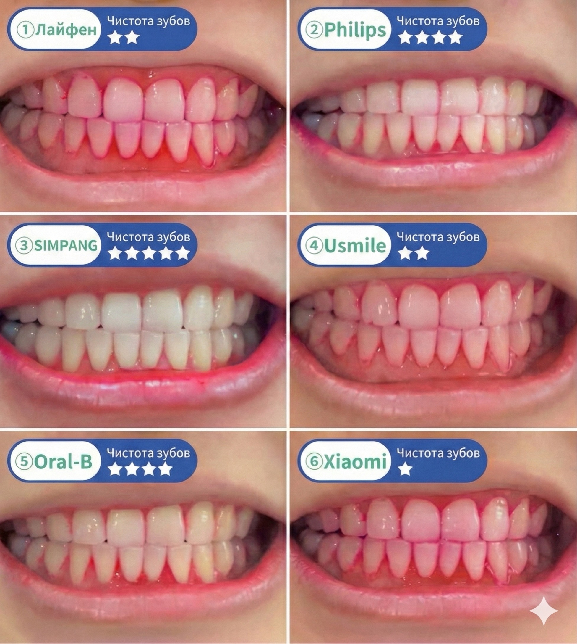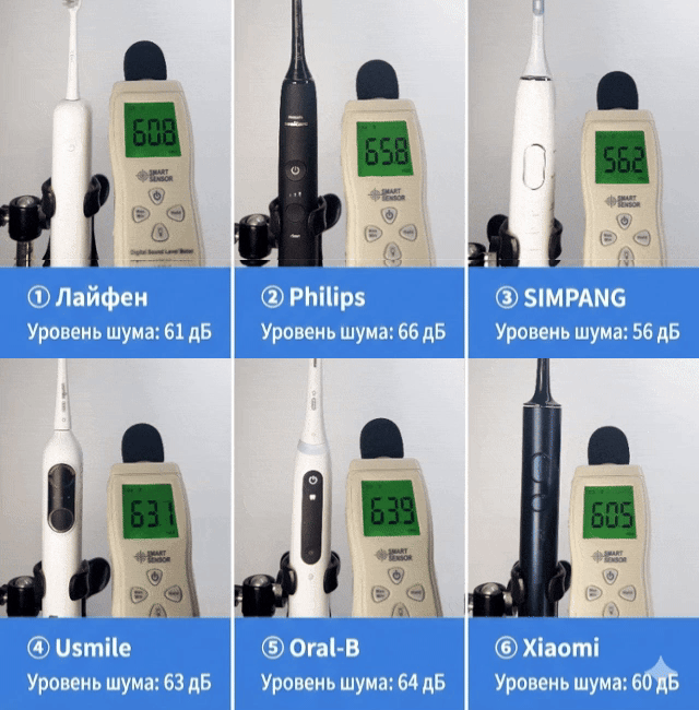 Мы протестировали 6 моделей: Philips, Oral-B, SIMPANG, Usmile, Лайфен, Xiaomi.