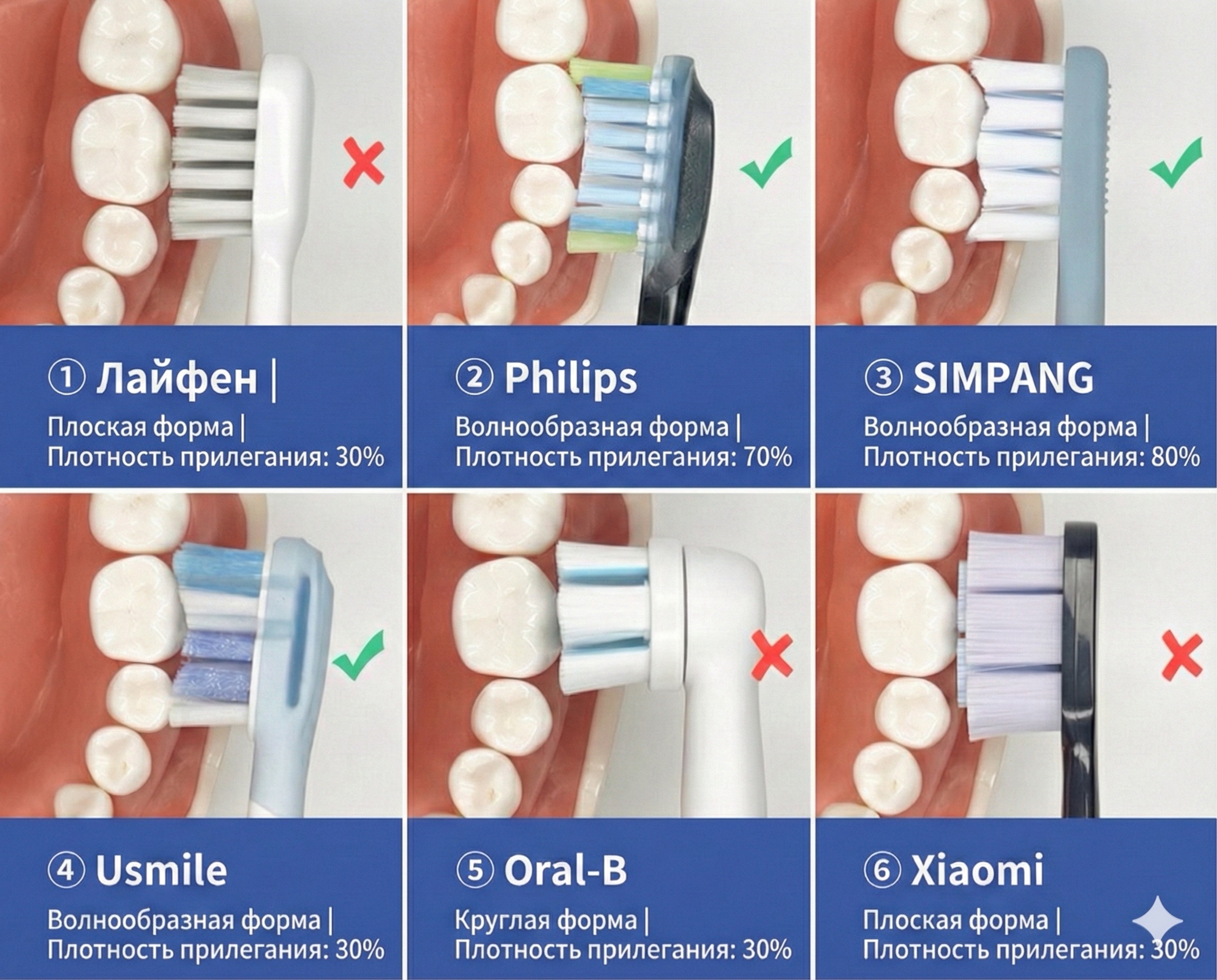 ✅ Итог: Лучшие насадки у Philips и SIMPANG.